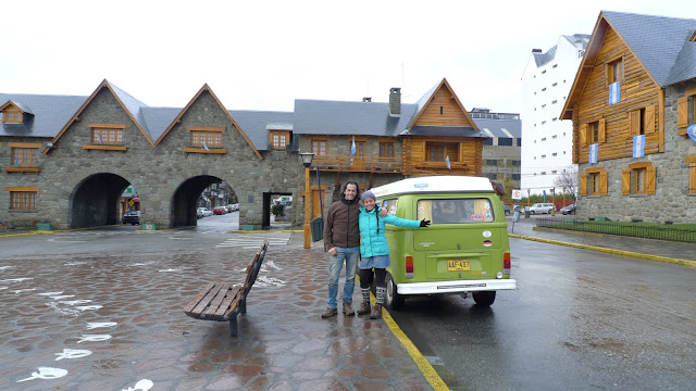 Al llegar a la aduana Argentina, sellamos los pasaportes y vamos a hacer el tramite del vehiculo, que es sencillo y sin complicaciones, solo se deben mostrar los documentos originales. Es increíble, pero con solo cruzar la frontera es tan notable el cambio de la manera de hablar de las personas, la jovialidad y la alegría que caracteriza a los argentinos. Por el dia de hoy nuestro propisito llegar a Bariloche, no estábamos muy lejos pero el camino se nos hacia largo y por algunos momentos temimos haber tomado el camino equivocado. De pronto el paisaje siempre verde, con grandes arboles y mucha vegetación se torna en un paisaje un poco mas marron con plantas de poco tamaño, pasto y pampa, al fondo un gran lago y una cuidad en sus orillas, hemos llegado a Bariloche. Lo primero que decidimos hacer comer algo que nos habían recomendado desde hacia bastante rato que era la famosa carne a la parilla, parqueamos la kombi en un lugarcito que se había acabado de desocupar, por que encontrar donde parquearse en el centro cívico de Bariloche es toda una hazaña y fuimos al restaurante que nos quedo mas cerca y a recomendación del mesero pedimos un bife chorizo cada uno acompañado de un vino Bianchi borgoña que fue un excelente amigo para la carne. Ahora despues de haber probado los famosos asados podemos decir que aunque parece tan sencillo asar un trozo de carne, tiene su ciencia y aca la conocen.